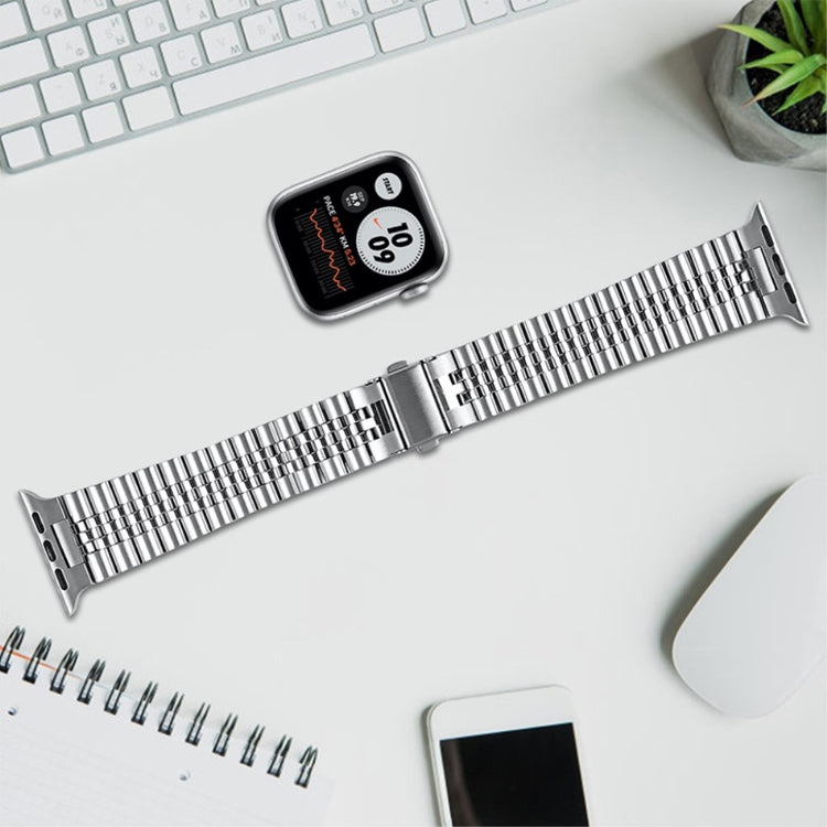 Elegante y duradera, esta correa de repuesto de acero inoxidable con cinco cuentas para tu Apple Watch es el accesorio perfecto para complementar tu estilo.