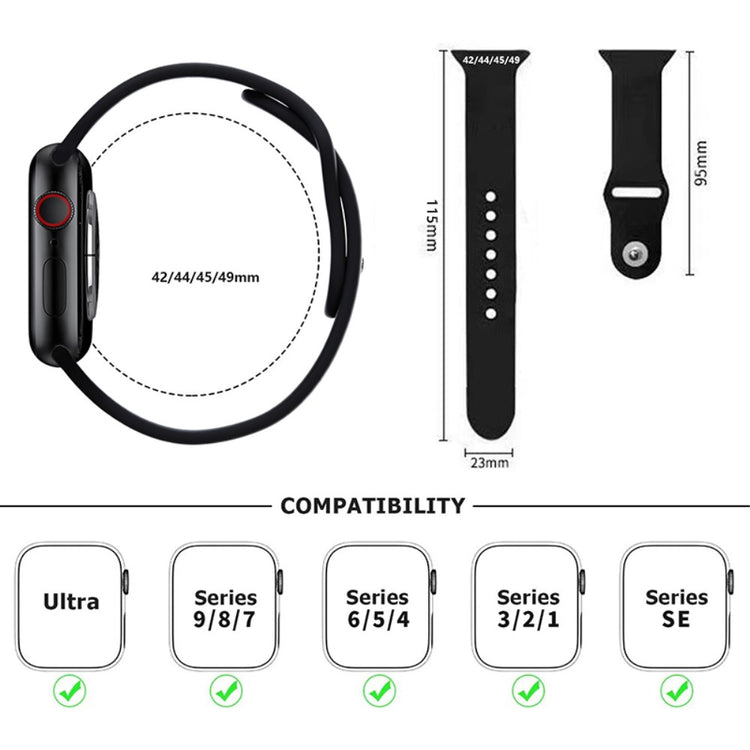 KALEBOL Apple Watch 49mm / 45mm / 44mm / 42mm Silicone Watch Straps, Size: S / M - Light Grey