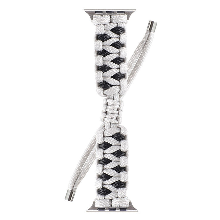 Correa de relojería con cierre de cuerda ajustable y hecha de nylon trenzado resistente, ideal para diversas series de Apple Watch. Su diseño elaborado no solo le aporta un toque elegante y vintage, sino que también garantiza un ajuste fácil y cómodo. Con su sistema de montaje fácil, simplemente desliza los adaptadores de acero inoxidable en su lugar y disfruta de un estilo moderno y personalizado.