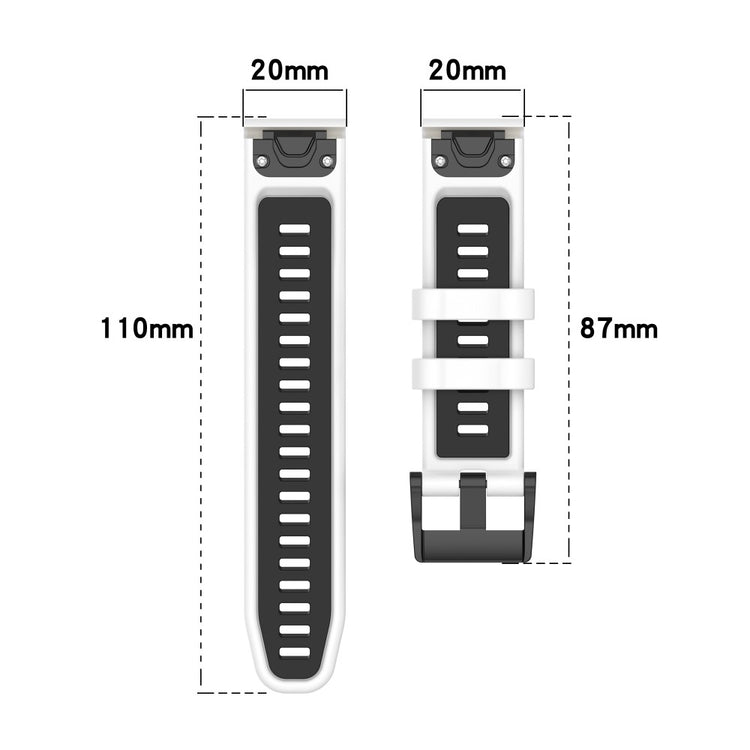 Garmin Fenix 7S / 7S Pro / 6S QuickFit 20mm Silicone Watch Band Dual Color Strap Replacement - Black+Red
