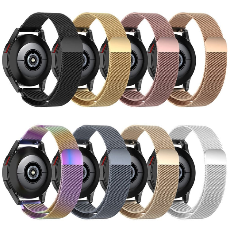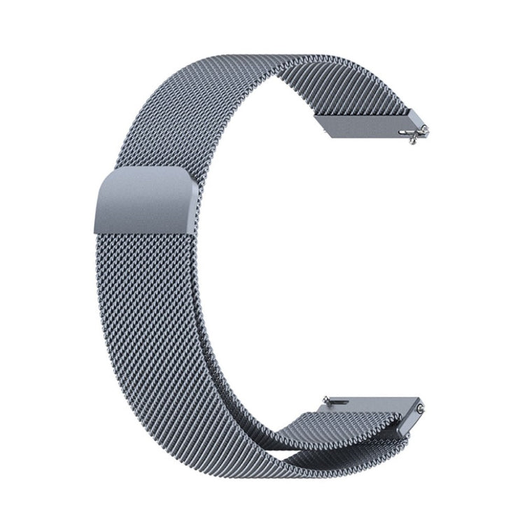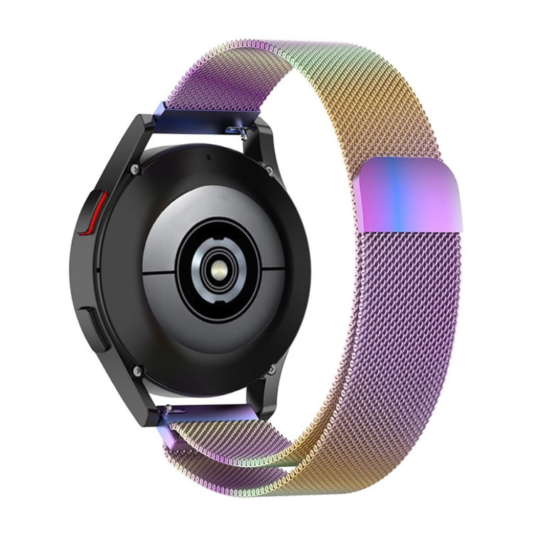 Reemplazo de correa de reloj inteligente de acero inoxidable de 20mm, compatible con diversos modelos de Samsung Galaxy Watch y otros relojes inteligentes. Diseñada con un cierre magnético para un ajuste conveniente y una malla fina que permite una transpiración adecuada, evitando la sudoración. Perfecta para reemplazar la correa antigua o dañada, con una longitud de 223mm y compatible con múltiples marcas como Garmin y Huami.