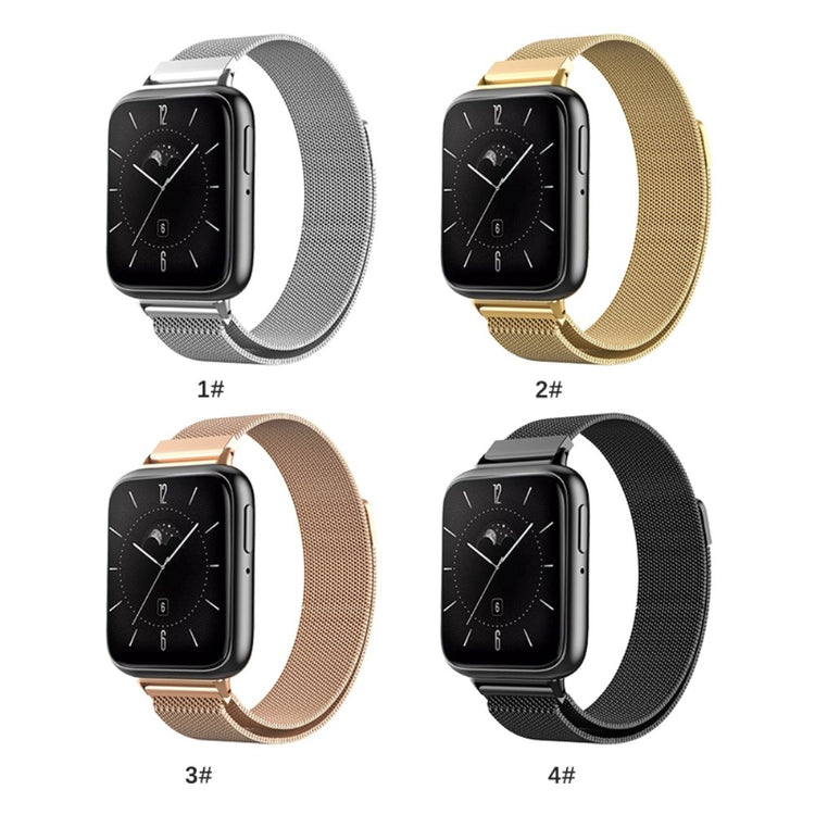 Reemplazo de correa para smartwatch fabricado en material de metal premium, elegante y más duradero. Su diseño de bucle magnético permite un ajuste fácil y cómodo. Con un diseño de malla transpirable que evita la sudoración, es la opción ideal para sustituir tu correa vieja o rota.