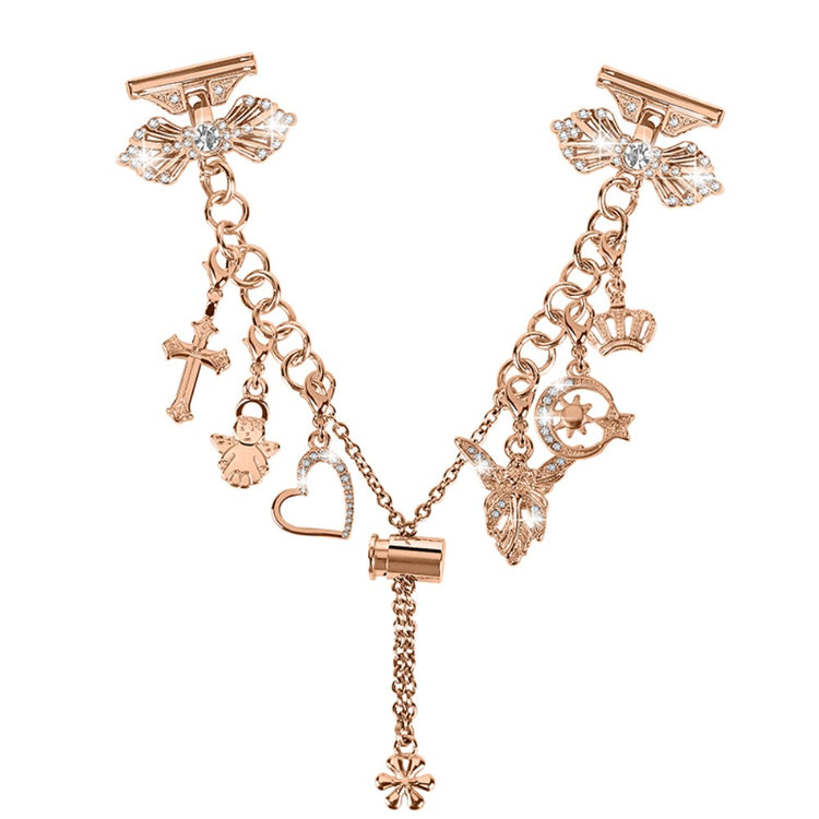 La correa del reloj es ajustable y se adapta a diferentes tamaños de muñeca, lo que proporciona un ajuste cómodo para todos. Con su diseño de múltiples colgantes, esta correa ofrece un aspecto elegante y delicado, agregando un toque de sofisticación a tu reloj inteligente.