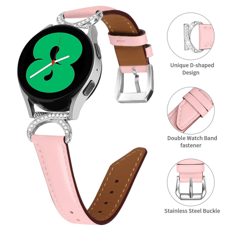 Descubre la opción perfecta para revitalizar tu reloj inteligente con nuestra correa de repuesto de cuero dividido. Fabricada con un exquisito nivel de acabado, esta correa es suave y cómoda, ideal para un uso prolongado. Su diseño con decoración de rhinestones y conector de metal en forma de D le añade un toque de elegancia y estilo inigualable. Gracias a su hebilla de acero inoxidable y diseño de múltiples agujeros, ajustar el tamaño es muy sencillo, lo que garantiza un ajuste perfecto en cualquier muñeca. Además, el extremo de la correa presenta una forma inclinada que la hace lucir más chic y atractiva. Es la solución ideal para reemplazar tu vieja correa rota y también compatible con otros relojes que utilizan correas de 20 mm. No pierdas la oportunidad de darle una nueva vida a tu Samsung Galaxy Watch 3 o Watch 5 con este accesorio excepcional.