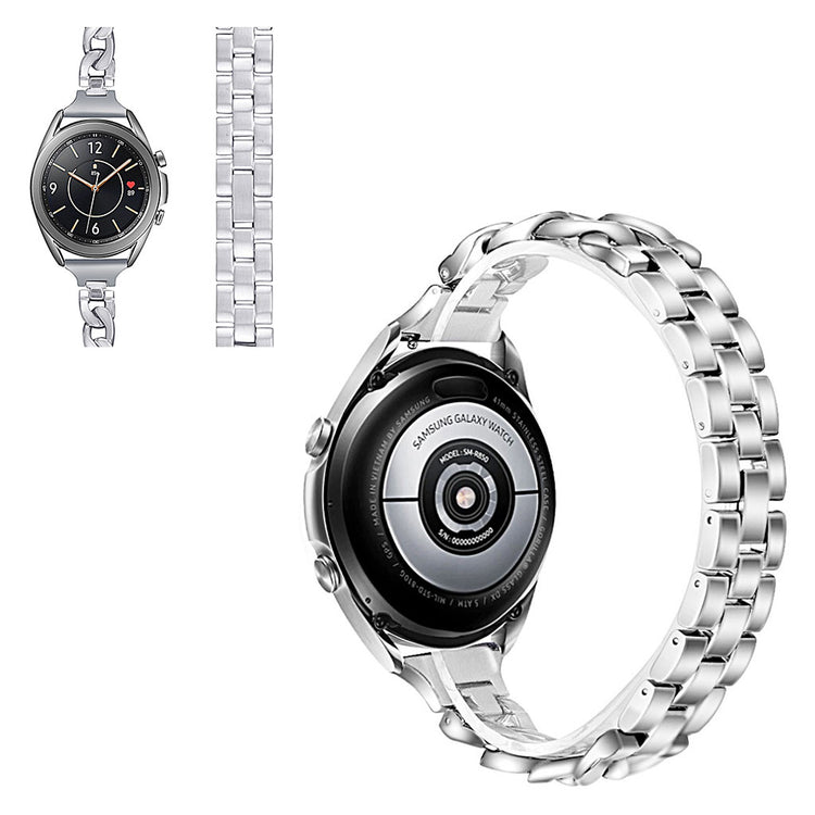 Correa de reloj de acero inoxidable de alta calidad para reemplazo del Samsung Galaxy Watch 3, hecha de material sólido y duradero. Su tamaño se puede ajustar fácilmente según la circunferencia de la muñeca y cuenta con un hebilla metálica sencilla de usar. Ideal para sustituir tu viejo o roto, su instalación y remoción son muy sencillas.