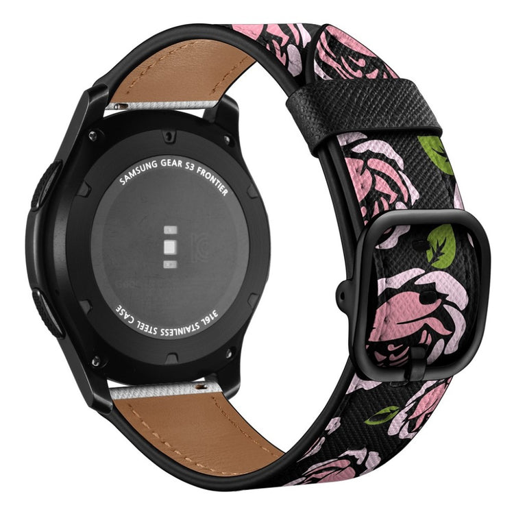 Reemplaza la correa de tu reloj inteligente con esta correa de cuero genuino de 22mm, diseñada para Samsung Gear S3 Classic, S3 Frontier y Galaxy Watch 46mm. Este accesorio elegante cuenta con un diseño impreso moderno y se incluye un adaptador en ambos extremos para un cambio sencillo. Ideal para sustituir tu correa antigua o dañada, se adapta a muñecas de 10 a 20 cm de circunferencia.