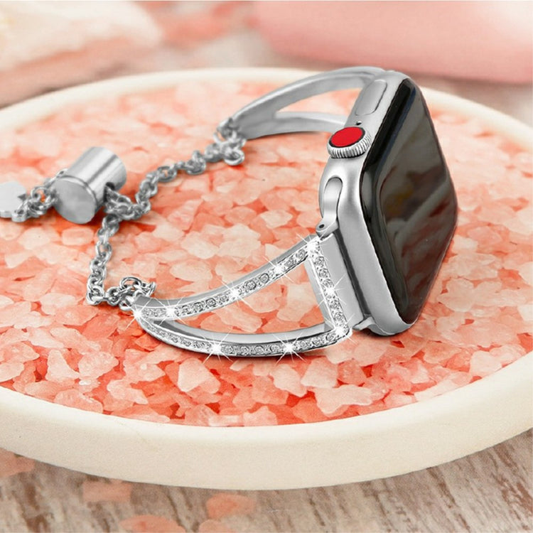 Esta pulsera de reemplazo para reloj inteligente está fabricada con material metálico de alta calidad, ofreciendo una durabilidad exquisita. Su decoración de rhinestones brillantes añade un toque elegante y estilizado, mientras que el diseño permite un uso cómodo y seguro, siendo resistente al agua y al sudor. Además, el hebilla deslizante ajustable facilita el ajuste al tamaño de su muñeca, sin necesidad de herramientas.