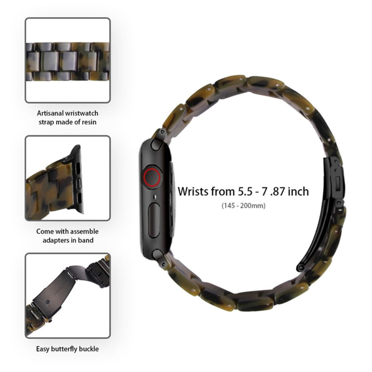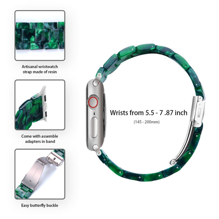 Descubre la elegancia y funcionalidad que ofrece nuestra pulsera de resina de tres cuentas diseñada para Apple Watch Series 6, 5, 4, SE y SE (2022) de 40mm. Fabricada con materiales de alta calidad, esta pulsera es impermeable y resistente a la oxidación, garantizando durabilidad y un aspecto impecable. Cada pieza de resina ha sido pulida a mano por artesanos experimentados, lo que asegura un acabado excepcional. La combinación con un clasp de acero inoxidable proporciona un cierre seguro y confiable. Su diseño flexible y el adaptador de acero inoxidable permiten una fácil instalación y reemplazo, adaptándose a tus necesidades. Además, el funda transparente protege tu reloj de caídas, rayones y otros daños, asegurando que tu accesorio luzca siempre como nuevo. Ideal para muñecas con una circunferencia de entre 5.5 y 7.87 pulgadas (140-200mm), esta pulsera es la elección perfecta para quienes buscan estilo y protección en un solo producto.