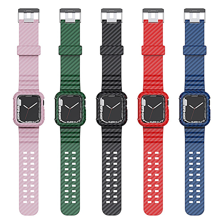 Dale un toque deportivo y elegante a tu Apple Watch Series 7 de 41mm con esta correa de repuesto de TPU con textura de fibra de carbono. Fabricada con materiales de alta calidad, esta correa ofrece comodidad y protección para tu reloj inteligente.