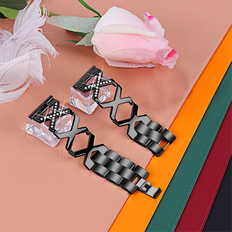 Correa de reloj de acero inoxidable premium con diseño en forma de X, elegante y duradera para su uso. Decorada con brillantes, aporta un toque de lujo a su apariencia. Diseño de hebilla que permite colocar y retirar la correa con facilidad, adecuada para cualquier ocasión.