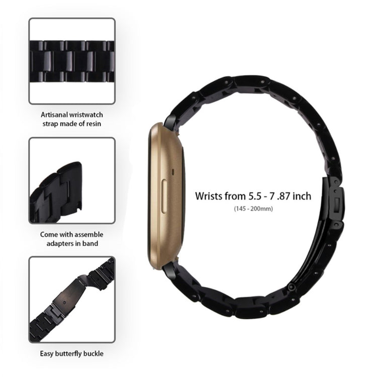 Esta correa, diseñada para el Fitbit Versa 4 / Sense 2, está fabricada con resina de alta calidad, lo que la hace resistente al agua y al óxido. Cada pieza de resina es pulida a mano lentamente por artesanos experimentados, garantizando un acabado excepcional.
