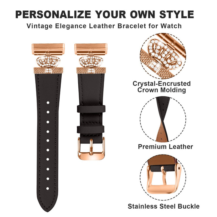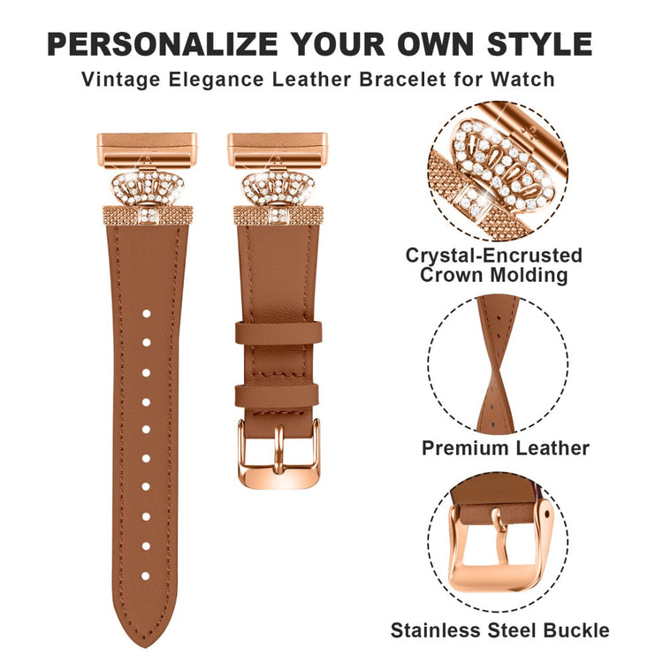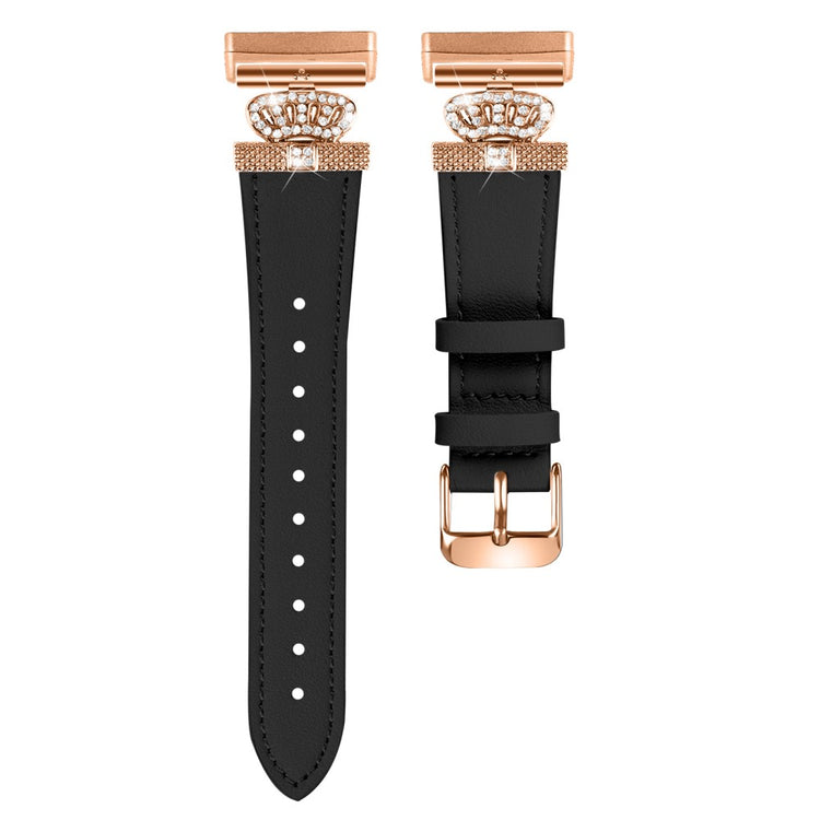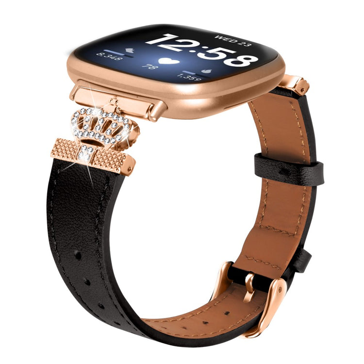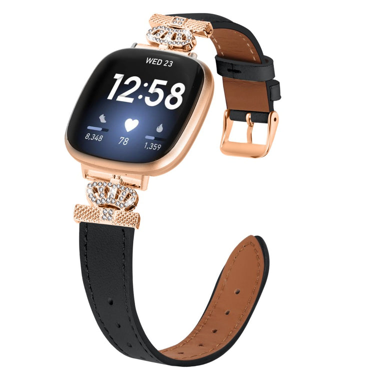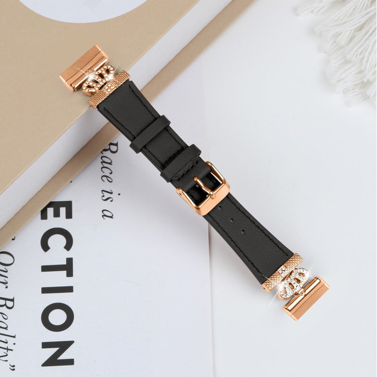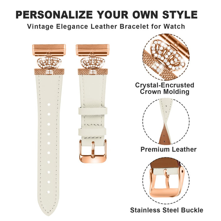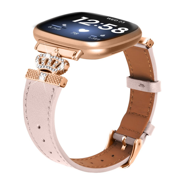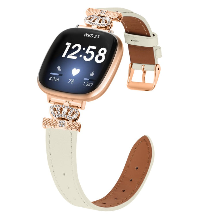 Fitbit Versa 4 / Sense 2 Smooth Genuine Cow Leather Rhinestone Watch Strap - Apricot